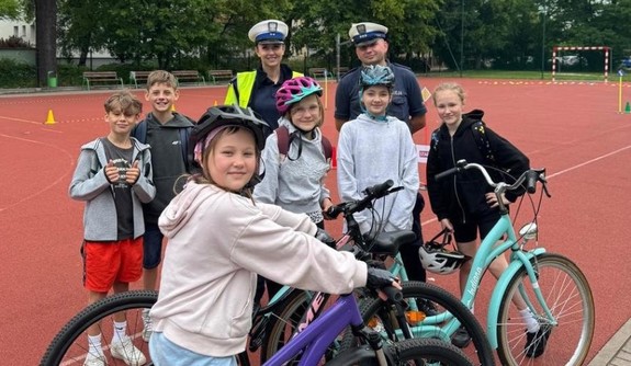 Policjanci oławskiej drogówki egzaminowali uczniów na kartę rowerową